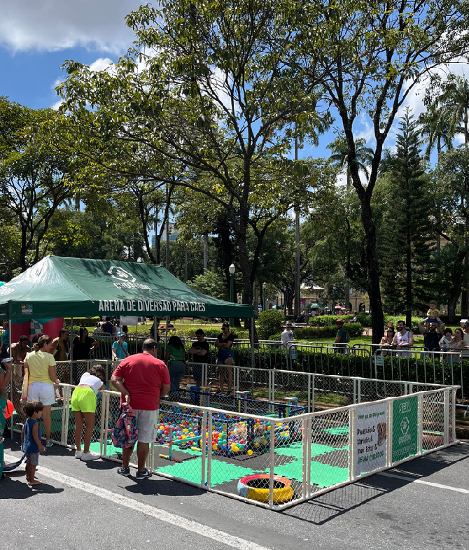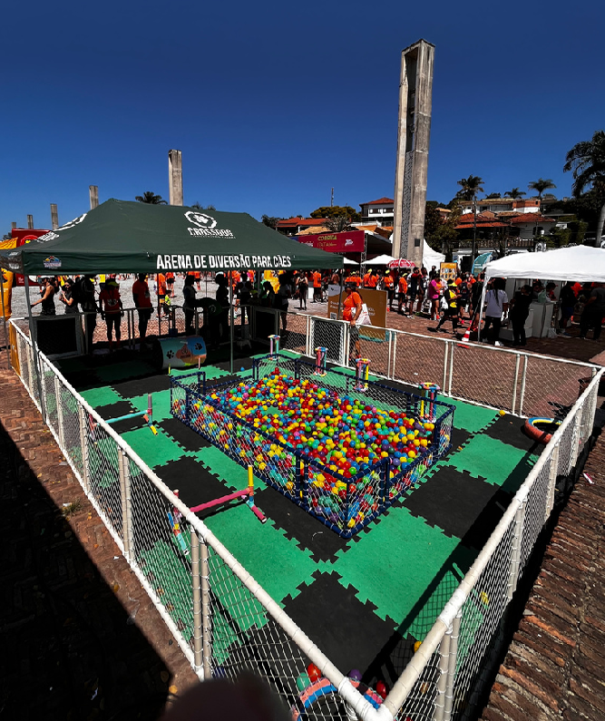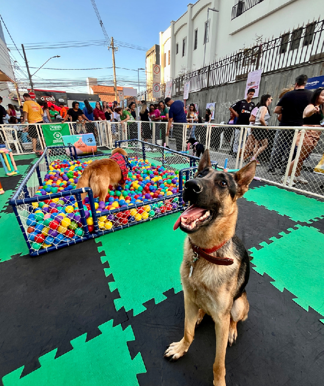 Com a Arena Móvel, os tutores aproveitam o evento com tranquilidade enquanto seus cães se divertem em um espaço seguro, com atividades e brincadeiras monitoradas por especialistas em comportamento canino.